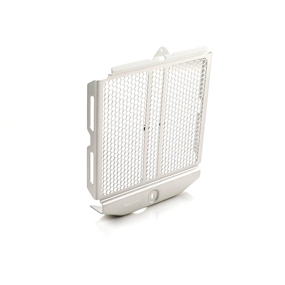 A must for the serious off-road rider. This aluminium radiator guard provides improved protection to the radiator whilst producing optimal air flow to the radiator through specially designed laser cut pattern. *Lasercut and pressed *2mm thick *Laser etched triumph branding *Designed for optimal air flow to the radiator
