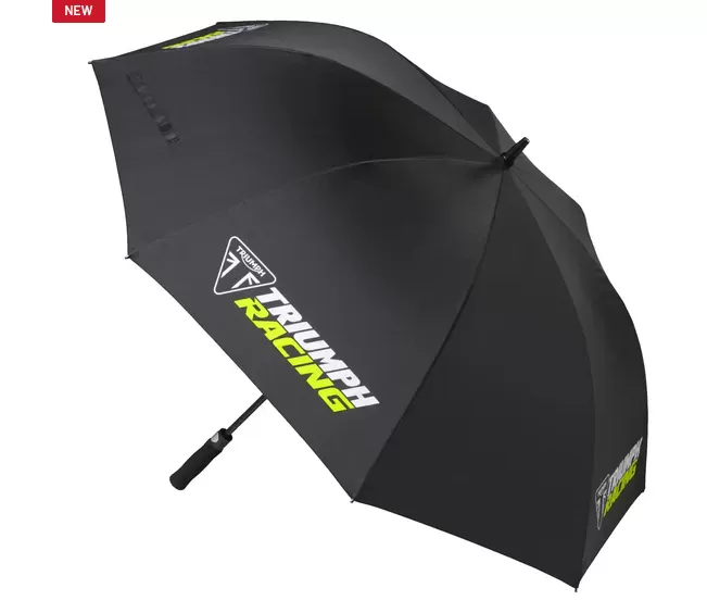 Engineered to withstand challenging weather conditions, the windproof design flexes against buffeting winds rather than breaking, whilst the corrosion-resistant materials ensure long-lasting performance. The convenient automatic push-button opening mechanism allows for quick, one-handed deployment, and the ergonomic foam grip handle provides comfortable hold even during extended use. Featuring striking Triumph Racing branding across four panels, this umbrella is the perfect way to showcase your passion for motorsport.