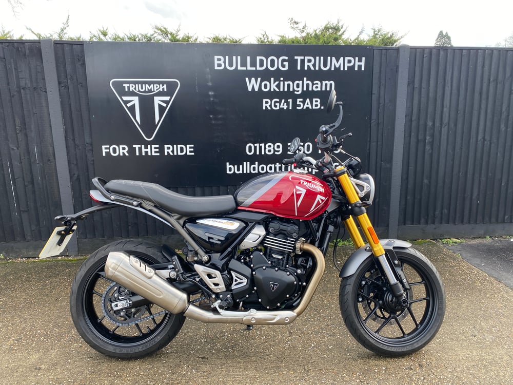 Red , 400 cc , Manual 6 Speed , 2025 25 Reg , 1,422 miles , Full Dealership History , USB Socket, TRIUMPH USED APPROVED, 12 MONTHS WARRANTY AND ROADSIDE ASSISTANCE, TRIUMPH USED APPROVED, Traction Control, LED Indicators, Immobiliser, Gear indicator, Full Service History, Bar End Mirrors, ABS, A2 Licence Friendly, 12 MONTHS WARRANTY AND ROADSIDE ASSISTANCE , 12 Months Warranty , £4,395.00 .
