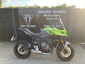 This is a brand new 2025 Model Triumph Tigersport 660. This offer is only available for a limited time and the bike will need to be registered before December 14th. The 2025 Tigersport 660 builds on the huge success of the previous version that has proven to be hugely popular in the middle weight adventure sports market, famed for its' light weight, agile handling, comfortable riding position and brilliant value. The Tiger 660 an also be made A2 licence compliant with an accessory fit restrictor kit. As well as having all the technology and spec from the previous model such as Riding modes, traction control, TFT display, adjustable screen & slip assist clutch this new model now adds the Sport riding mode, standard fit up & down Quickshifter/ blipper, corner optimised ABS, Standard fit Cruise control and standard fit Bluetooth connectivity unit too. This brand new bike is in stock now and available with its 2 year warranty, roadside assistance, 12 month road tax, Datatag secure markings and even a tank of fuel included. Other colours also in stock and if you have passed your full bike licence less than 1 year ago we can offer 500 towards this bike on our Ticket to Ride Deal.